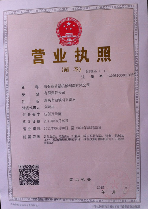泊頭市瑞誠機械制造有限公司位于我國聞名的鑄造之鄉(xiāng)河北省泊頭市河?xùn)|南工業(yè)區(qū),我公司設(shè)備齊全,制造經(jīng)驗豐富,具有雄厚的技術(shù)實力,順應(yīng)現(xiàn)代化市場之所需,注重技術(shù)產(chǎn)品的科研和開發(fā),使產(chǎn)品的種類不斷增加,質(zhì)量合格率不斷上升,我公司已成為生產(chǎn)齒輪油泵等產(chǎn)品的規(guī)?;髽I(yè).